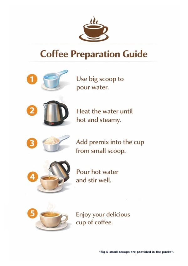Add 60 ml of hot water in 12.5 grams of premix and your perfect cup of coffee is ready.